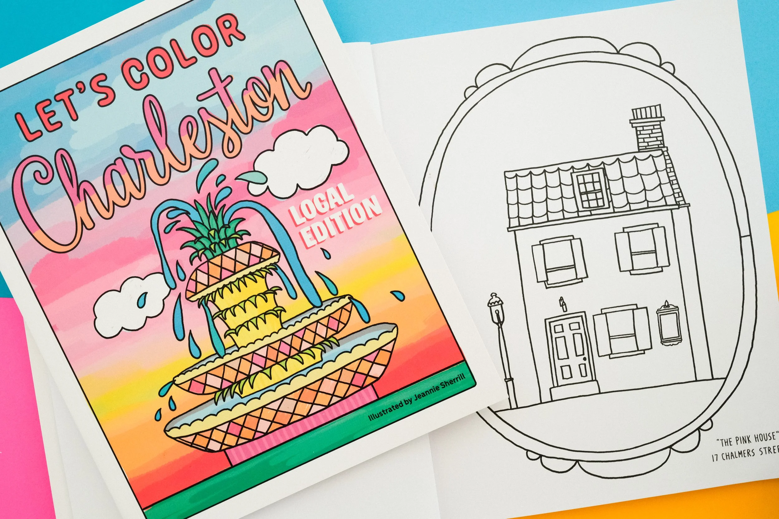 28 single-sided hand-illustrated pages featuring some favorite places and things around Charleston. Inside you will find: lighthouses, Pineapple Fountain, Rainbow Row, Ravenel Bridge, historic houses, animals, shark teeth, signage and other fun things commonly seen in the Lowcountry.